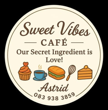 Sweet Vibes Cafe is a home based food business owned by Astrid, specialising in freshly baked, traditional treats. Our offerings include traditional Hertzogies, classic Malay Koeksisters, homemade carrot loaf, and banana loaf, all prepared with care using quality ingredients. We focus on authentic flavours, consistent quality, and beautifully presented baked goods that appeal to a wide range of customers.